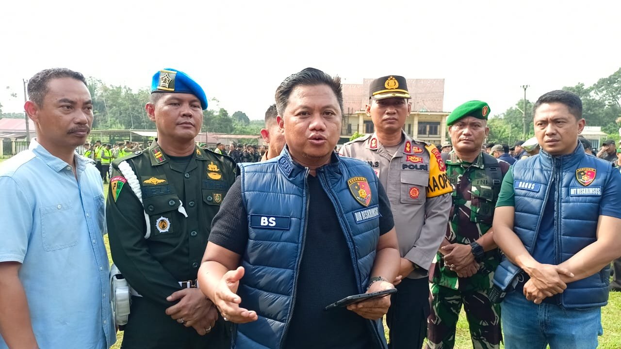 Gelar apel pasukan penertiban tempat masakan minyak ilegal (ilegal refinery) yang ada di Desa Mekar Sari, Kelurahan Keluang Kecamatan Keluang, Kabupaten Musi Banyuasin. Kamis (6/6/24).
