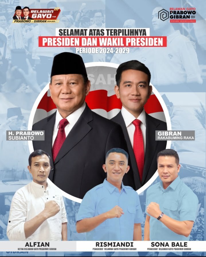 Selamat Pak Prabowo dan Mas Gibran Dari Relawan Gayo