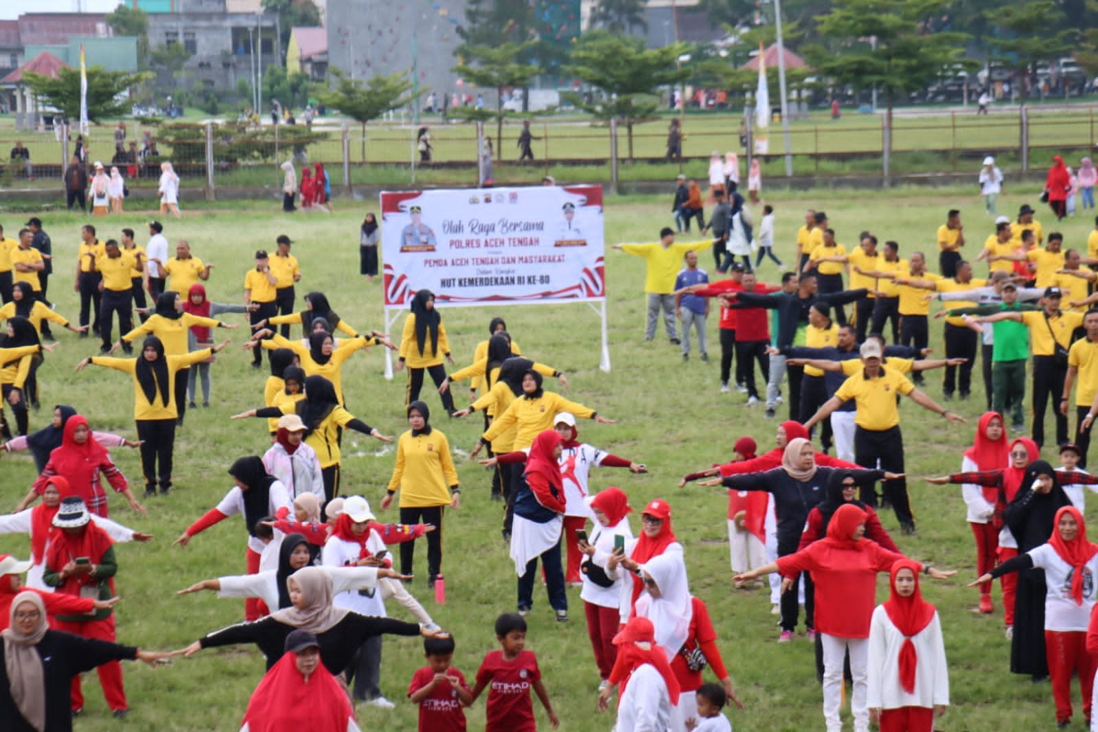 Dalam rangka menyambut Hari Ulang Tahun (HUT) ke-80 Kemerdekaan Republik Indonesia tahun 2025, Polres Aceh Tengah menggelar kegiatan olahraga bersama Pemerintah Daerah dan masyarakat di Lapangan Bola Kaki Musara Alun, Kampung Blang Kolak II, Kecamatan Bebesen, Minggu pagi (10/8/2025) pukul 07.39 WIB.