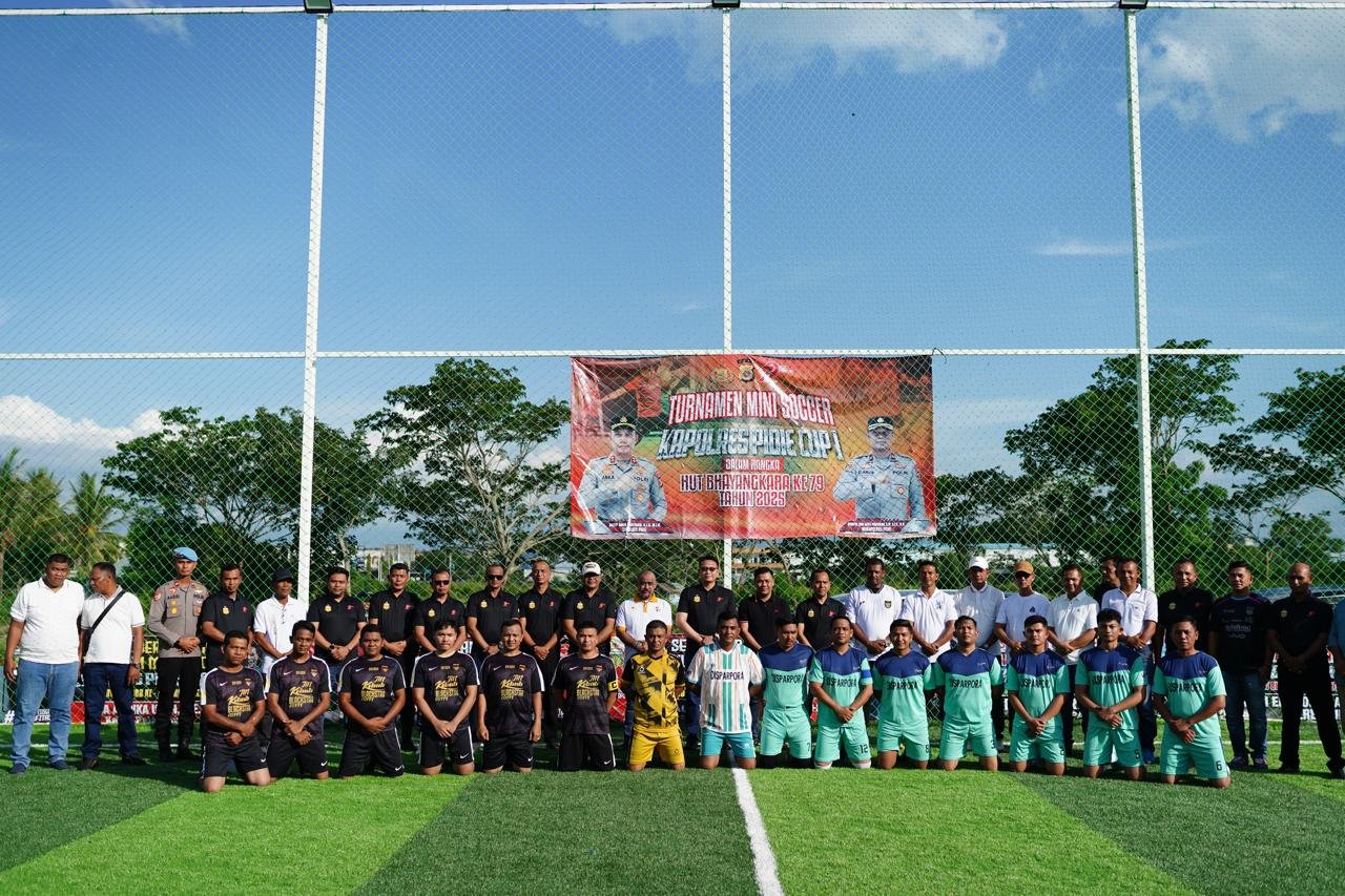 Sigli – Dalam rangka menyambut Hari Ulang Tahun (HUT) Bhayangkara ke-79, Polres Pidie menggelar turnamen mini soccer bertajuk “Kapolres Pidie Cup I” yang resmi dibuka pada Jumat sore, 13 Juni 2025, di Lapangan Mini Soccer Grand Sadidoh, Gampong Asan, Kecamatan Kota Sigli, Kabupaten Pidie.