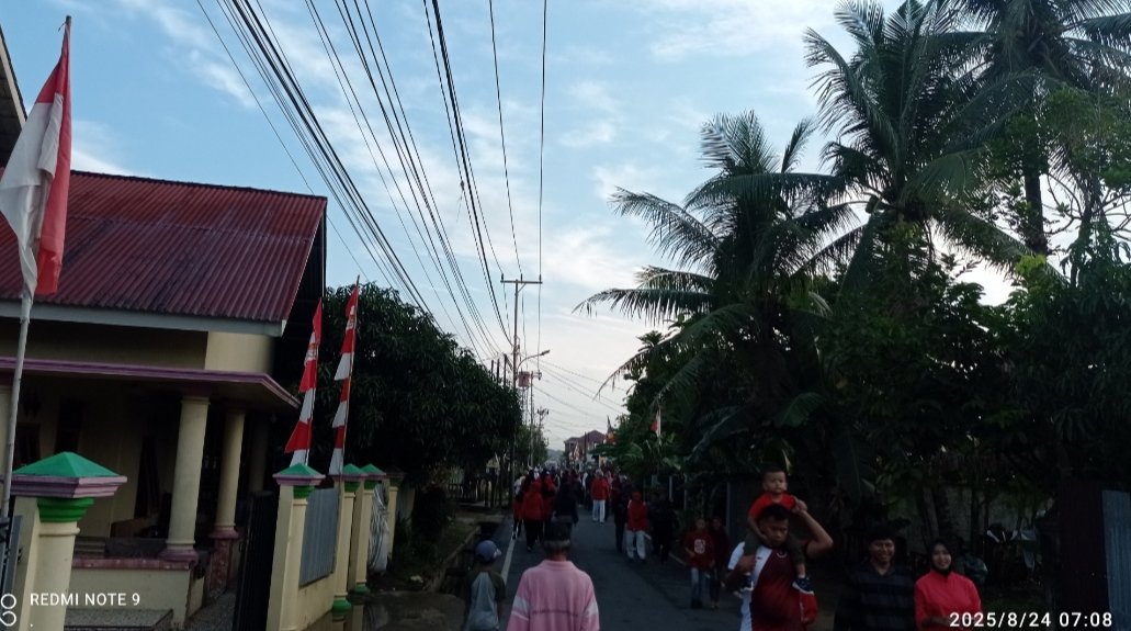 Terpantau, pada pukul 07.30 Wib peserta jalan santai memenuhi ruas jalan mega mendung, nampak dari arah yang berbeda peserta jalan santai menuju rute masing-masing yang telah di siapkan panitia. Berbagai kostum, tarian dan juga yel yel dikumandangkan oleh para peserta Gerak jalan santai dengan berbagai corak. Minggu (24/08/25).