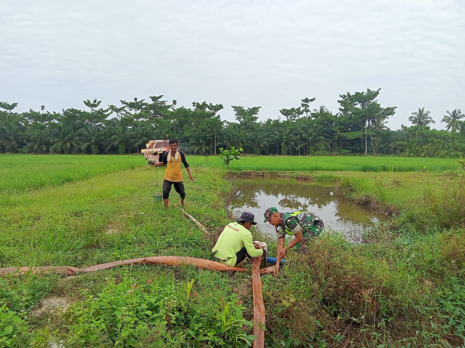 Dalam pendampingan petani warga binaan, Babinsa Koramil 03/Seruway Serda Budi Utomo Melaksanakan pendampingan Hanpangan membantu petani melakukan pengairan sawah menggunakan metode pompanisasi,Pendampingan ini bertujuan untuk meningkatkan produktivitas pertanian,Milik Bapak Surya, luas 5 Rantai, anggota Poktan Mabar jaya di Desa Muka sungai Kuruk, Kecamatan Seruway, kabupaten Aceh Tamiang. Senin (10/02/2025)