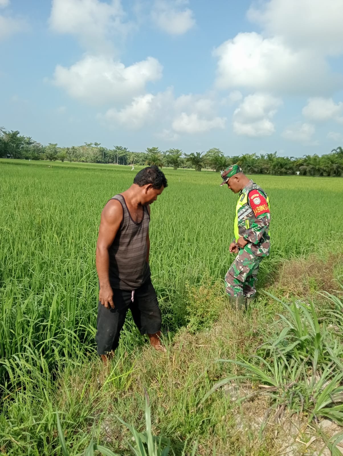 Babinsa Koramil 03/Seruway Serda Ridwan melaksanakan pendampingan peninjauan tanaman padi milik Bapak Ponijan di Desa Muka Sungai Kuruk, kecamatan Seruway, Kabupaten Aceh Tamiang. Selasa (30/04/2024)