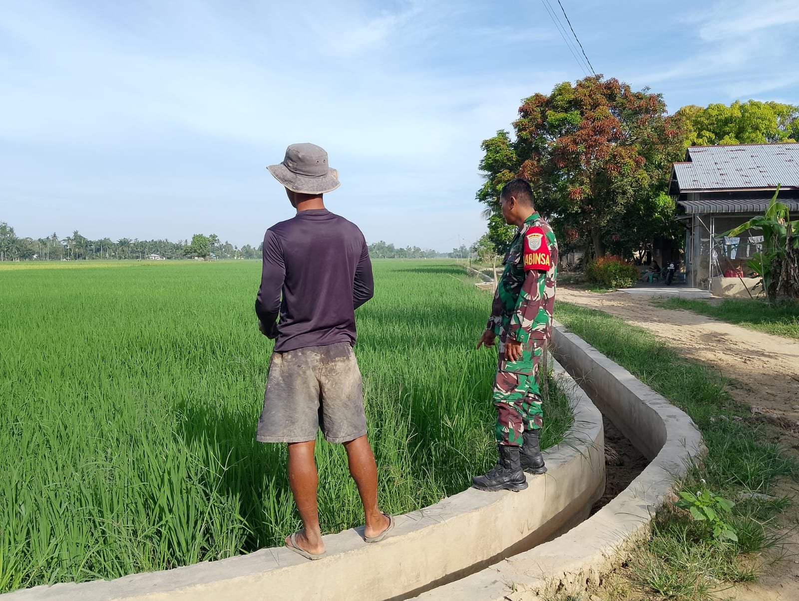 Babinsa Koramil 06/Manyak Payed Serka Budi Gunawan melaksanakan kegiatan pendampingan dan pemantauan perkembangan tanaman padi milik warga. Kegiatan dilaksanakan di Desa Sampaima, Kecamatan Manyak Payed, Kabupaten Aceh Tamiang, pada Rabu (25/02/2026)