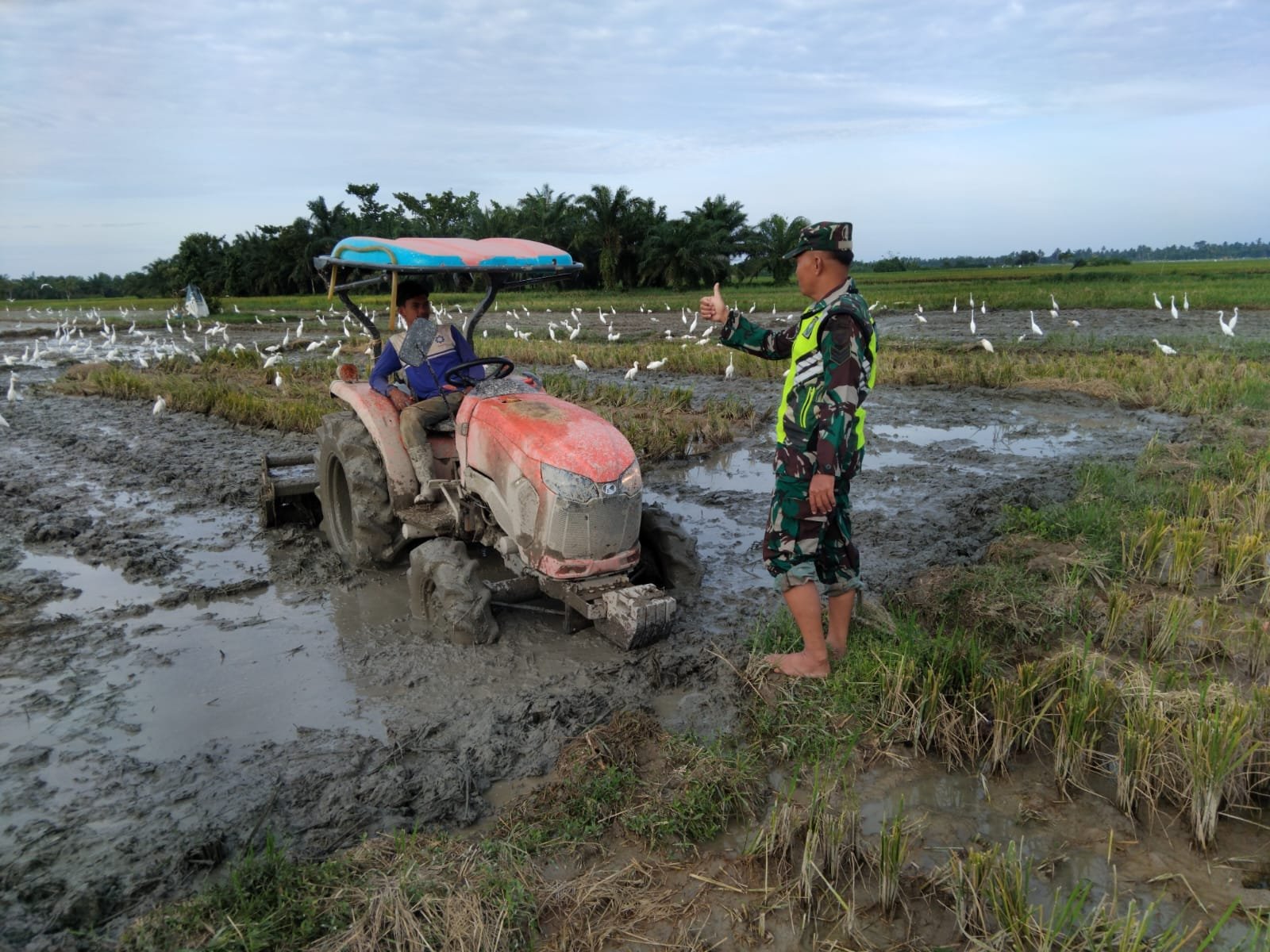 Babinsa Koramil 09/Banda Mulia Serka Erwan melaksanakan pendampingan petani pada pembajakan dan pengolahan lahan sawah di Desa Telaga Meuku Dua, Kecamatan Banda Mulia, Kabupaten Aceh Tamiang. Senin (27/01/2025)