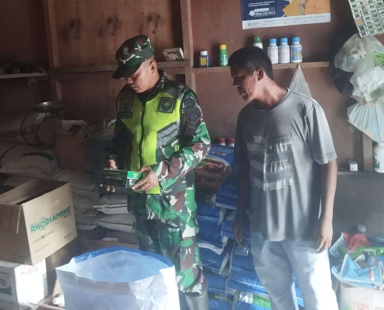 Babinsa Koramil 09/Banda Mulia Serka Erwan melaksanakan Pengecekan stok pupuk bersubsidi dan Non Subsidi serta Racun Insektisida,Fungsida untuk kebutuhan petani di musim Rendeeng di UD Rizal Tani Desa Telaga Meuku Satu, Kecamatan Banda Mulia, Kabupaten Aceh Tamiang, Selasa (25/02/2025)