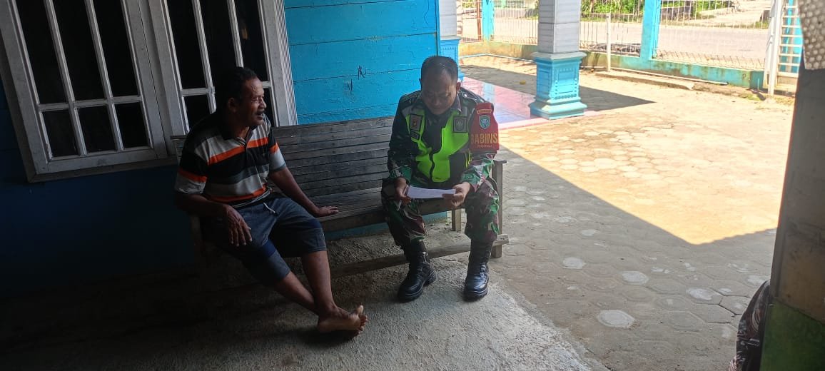 Babinsa Koramil 08/Rantau Serka Sabar Triwibowo melaksanakan Komunikasi Sosial anjangsana dengan warga binaannya di Desa Durian, Kecamatan Rantau, Kabupaten Aceh Tamiang. Senin (03/03/2025)
