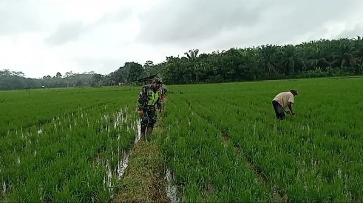 Babinsa Koramil 05/Tamiang Hulu Serka Tri Mulyadi bersama Petani melaksanakan kegiatan pendampingan memantau perkembangan tanaman padi, yang bertempat di Desa