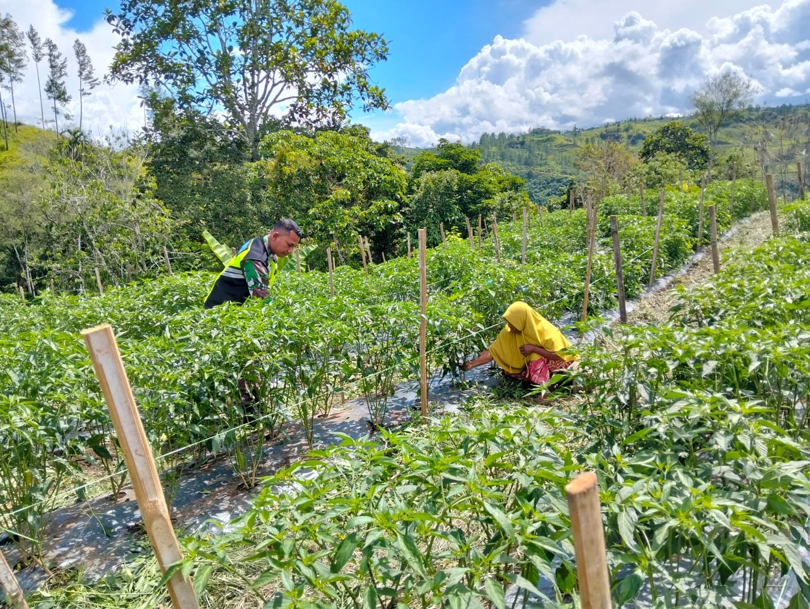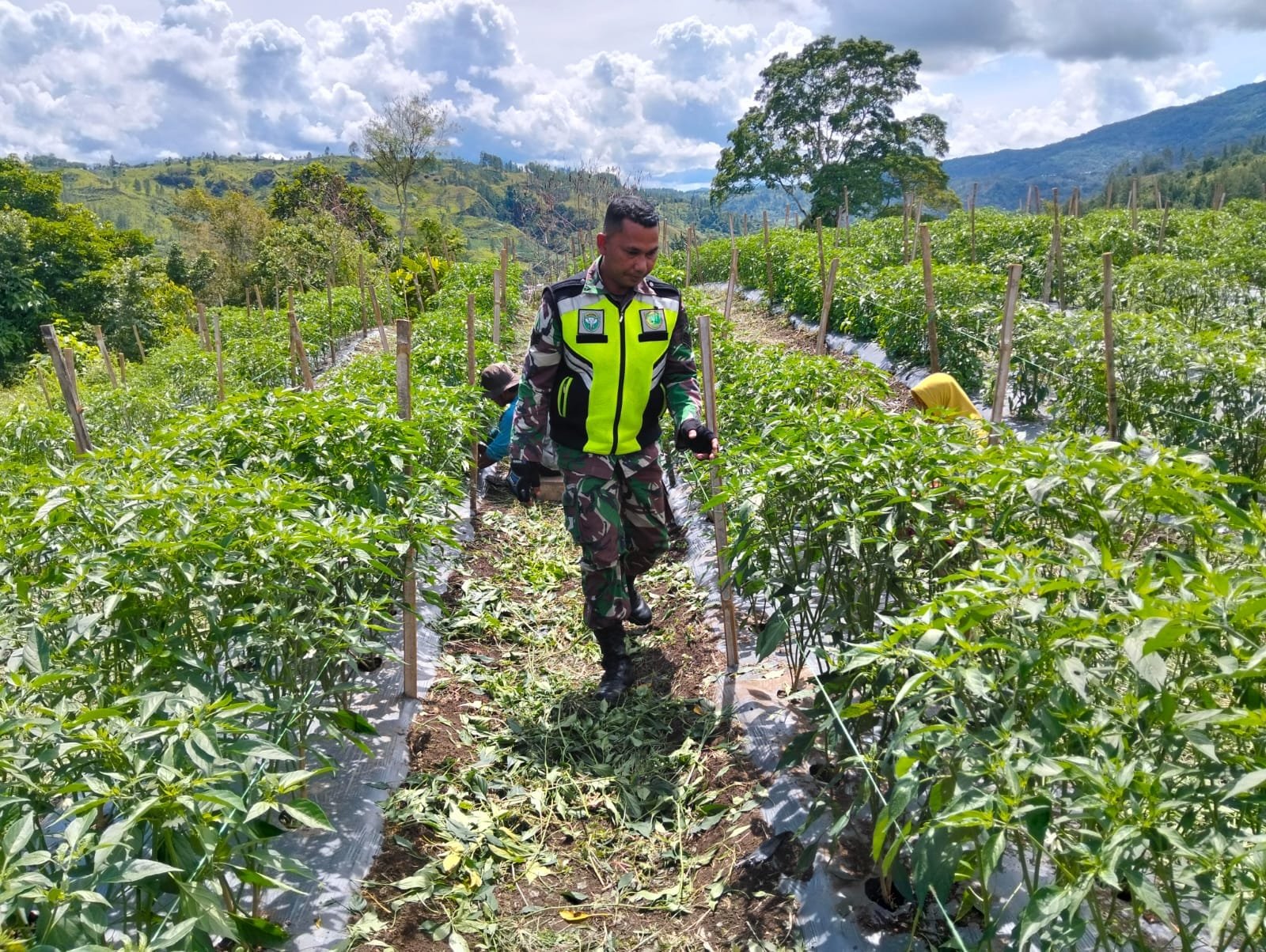Aceh Tengah-satupena.co.id: Dalam rangka Membantu warga binaan didalam pengendalian gulma rerumputan di dalam lahan pertanian cabai, Serma Suryono, Babinsa Koramil 09 Ketol Kodim 0106 Aceh Tengah membantu warganya membersihkan lahan tanaman cabai.