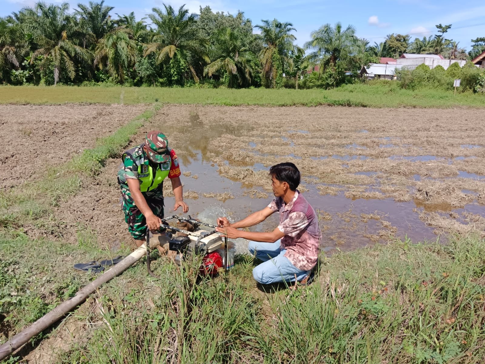 Seperti yang di lakukan oleh Serma Zulkarnaini Babinsa Koramil 04/Bendahara, Kodim 0117/Aceh Tamiang membantu petani dalam mengairi sawahnya yang kekurangan air menggunakan mesin pompa salah satunya di sawah milik Bapak Anto di Desa Lubuk Batil, Kecamatan Bendahara, Kabupaten Aceh Tamiang. Sabtu (08/02/2025)