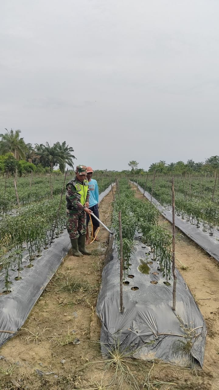 Saat ini peran TNI bukan saja hadir dalam mengamankan negara, lain itu juga terus berpartisipasi aktif untuk ketahanan pangan. Seperti yang dilakukan Babinsa Kodim 03/Seruway, Kodim 0117/Aceh Tamiang Sertu Ahmad membantu merawat tanaman cabe dan memotivasi petani cabe merah di Desa Sungi Kuruk Satu, Kecamatan seruway, Kabupaten Aceh Tamiang, pada Kamis (10/04/2025)