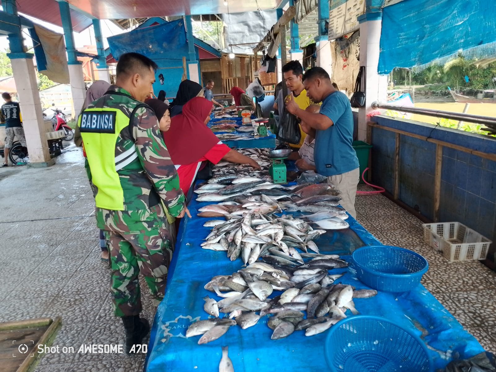 Babinsa Koramil 04/Bendahara Sertu Joko Hariyanto melaksanakan kegiatan Komunikasi sosial dengan penjual ikan di pasar tradisional Desa Mesjid Sungai Iyu, Kecamatan Bendahara, Kabupaten Aceh Tamiang, pada Sabtu (08/03/2025)