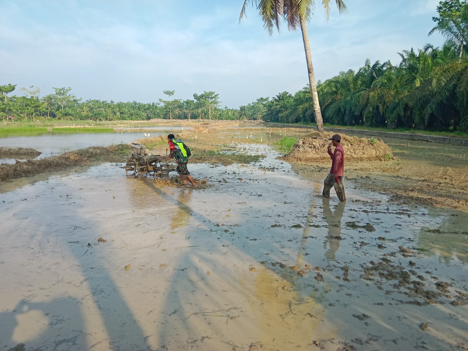 Babinsa Koramil 04/Bendahara, Kodim 0117/Aceh Tamiang Sertu Joko Hariyanto melaksanakan kegiatan Hanpangan dengan membantu Bapak Heri dalam membajak sawah menggunakan mesin traktor, bertempat di Desa Teluk Halban, Kecamatan Bendahara, Kabupaten Aceh Tamiang, pada Kamis (17/04/2025)