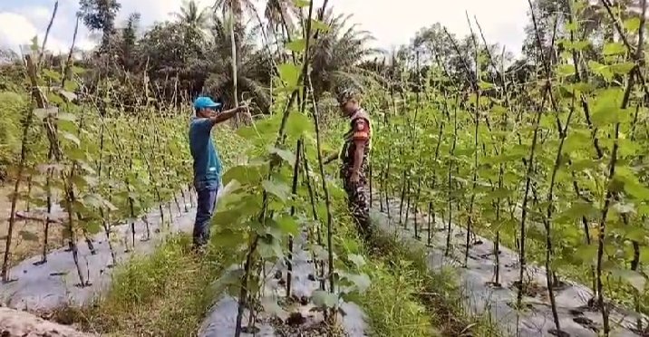 Bintara Pembina Desa (Babinsa) Koramil 06/Manyak Payed Sertu Ramayanto bersama masyarakat melaksanakan Komsos pendampingan pada tanaman kacang panjang di Desa Matang Ara Jawa, Kecamatan Manyak Payed, Kabupaten Aceh Tamiang. Jumat (14/02/2025)