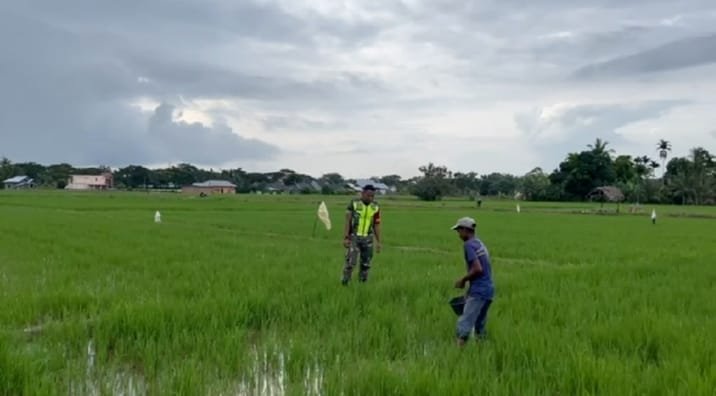 Sebagai mensukseskan program Presiden Republik Indonesia bapak Prabowo Subianto dalam ketahan pangan, Babinsa Koramil 06/Manyak Payed Sertu Ramayanto dari Kodim 0117/Aceh Tamiang, melakukan pendampingan pemupukan tanaman padi di lahan milik Pak Ali Iwan Kelompok Tani Sejahtera di Desa Meurandeh, Kecamatan Manyak Payed, Kabupaten Aceh Tamiang, pada Minggu (12/01/2025).