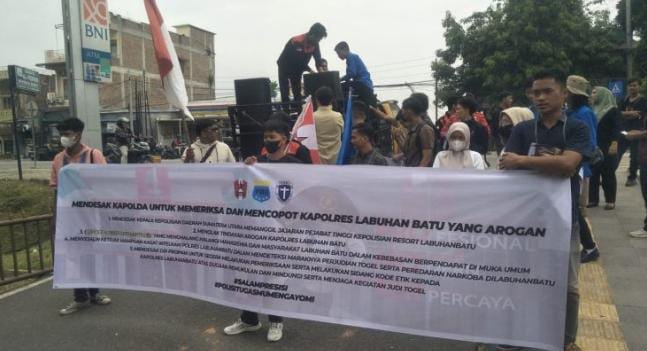 Puluhan mahasiswa dari Cipayung Plus asal Kabupaten Labuhan Batu mendesak Kapolda Sumut Irjen Agung Setya Imam Effendi segera mencopot Kapolres Labuhan Batu AKBP Benhard Malau.