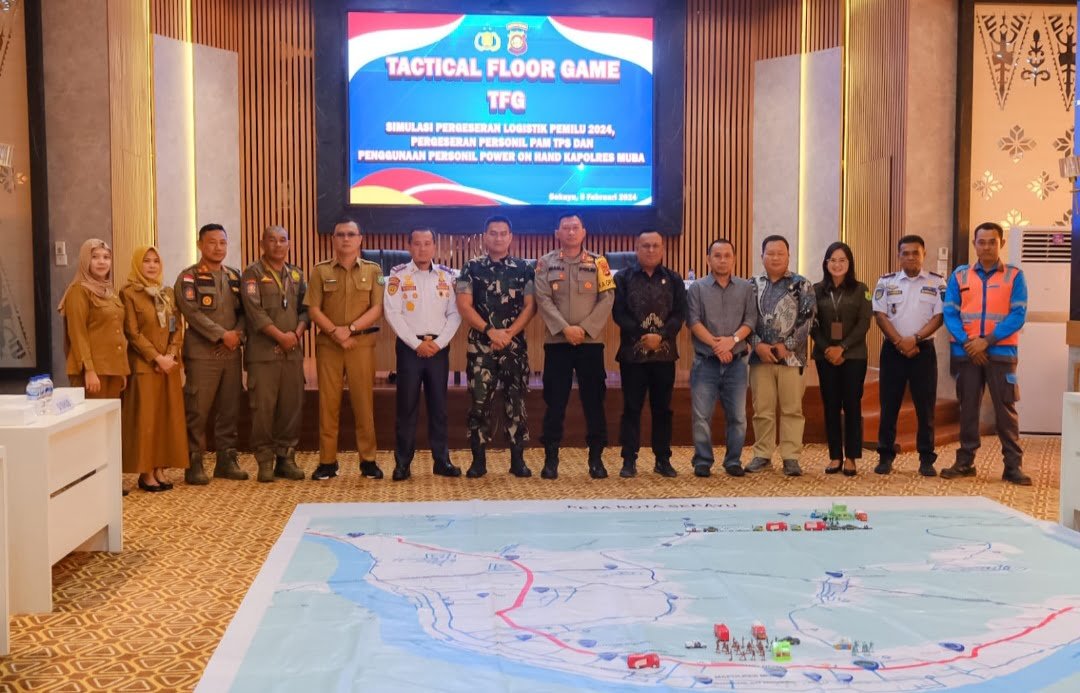 Pemerintah Kabupaten Musi Banyuasin (Muba) menghadiri kegiatan Tactical Floor Game (TFG) yang dilaksanakan di Aula Alex Noerdin Mapolres Muba, Senin (5/2/2024).