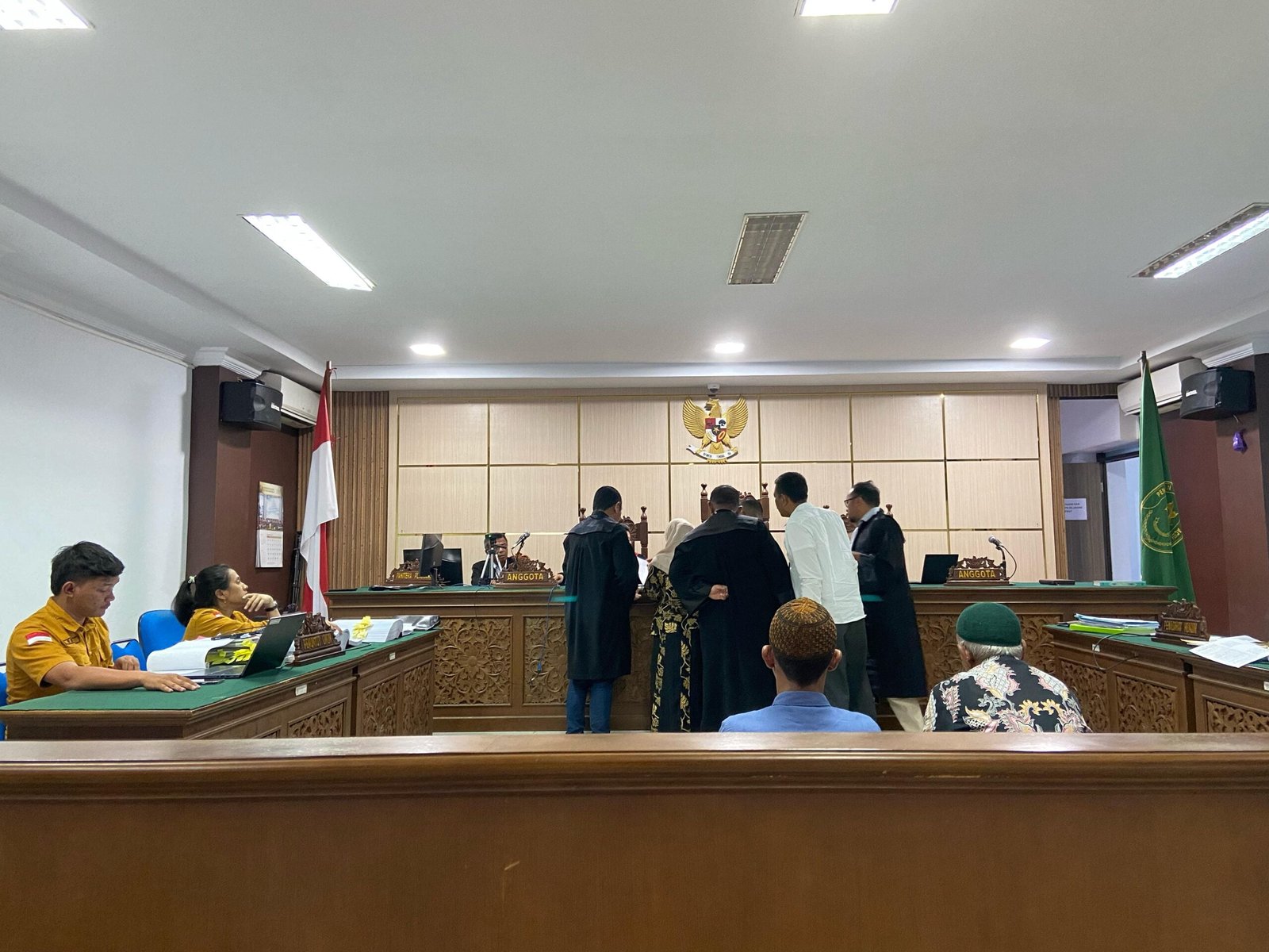 Sidang tersebut dipimpin oleh Ketua Majelis Hakim H. HAMZAH SULAIMAN, S.H dan H. HARMI JAYA, S.H., R. DEDI HARRYANTO, S.H.,M.Hum masing-masing selaku Hakim Anggota.