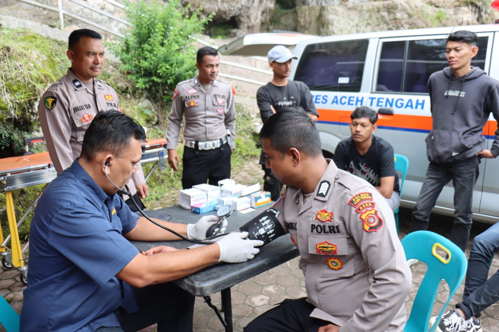 Sie Dokkes Polres Aceh Tengah memberikan pelayanan pengecekan secara gratis kepada pemudik dan maupun di jalur tempat wisata.