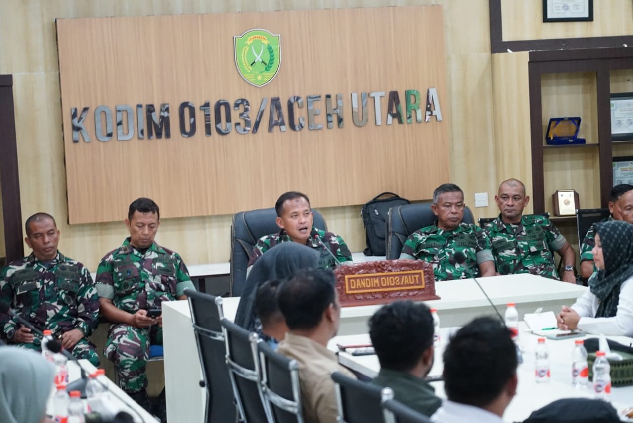 Lhokseumawe, Satupena.co.id. – Komandan Kodim 0103/Aceh Utara, Letkol Arh Jamal Dani Arifin, S.Sos., M.M.D.S., mengadakan silaturrahmi sekaligus rapat dengan kepala SPPG dan pemilik dapur MBG di ruang rapat Kodim, Desa Gampong Jawa Lama, Jalan Iskandar Muda, Rabu (1/10/2025). Pertemuan ini membahas pengawasan program MBG (Makanan Bergizi) yang menjadi prioritas Presiden RI Prabowo Subianto.