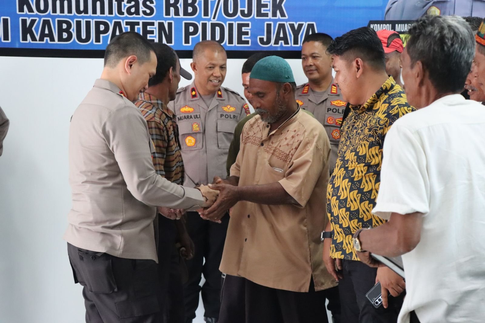 Acara ini dihadiri oleh Waka Polres, Kasat Lantas, PJU Polres, Kadishub Pidie Jaya, Kepala LLAJ Pidie Jaya, serta Keuchik Gampong Mayang Cut, Meureudu, bersama 21 anggota ojek.