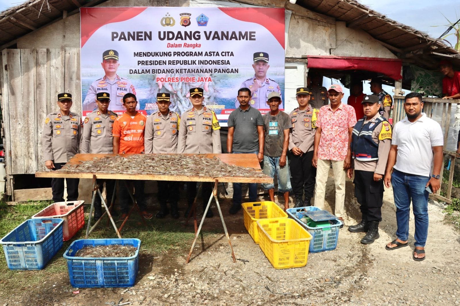 Pidie Jaya – Dalam rangka mendukung Program Asta Cita Presiden RI di bidang ketahanan pangan, Kapolres Pidie Jaya, AKBP Ahmad Faisal Pasaribu, SH., S.I.K., MH., bersama Pejabat Utama (PJU) Polres Pidie Jaya, melaksanakan panen udang vanamei pada Jumat, 15 November 2024.