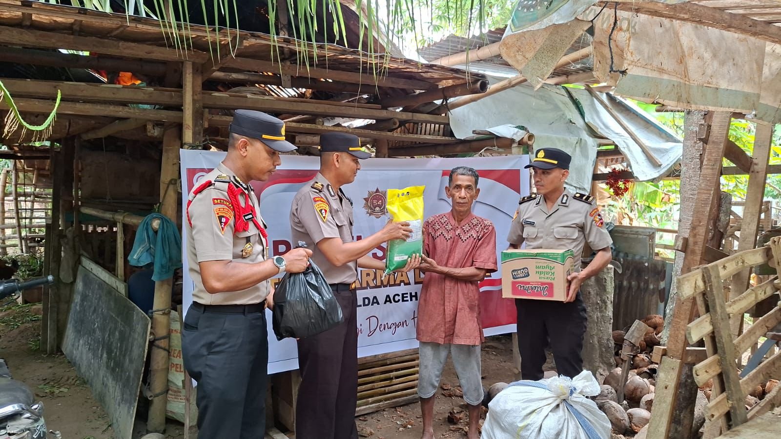 Pidie Jaya – Sebanyak Tiga orang Siswa Sekolah Pembentukan Bintara (Setukpa) Lemdiklat Polri Gelombang II yang tengah melaksanakan tugas di Polres Pidie Jaya Polda Aceh, mengimplementasikan nilai-nilai Tribrata melalui kegiatan bakti sosial (baksos) kepada masyarakat kurang mampu di Gampong Mayang Cut, Kecamatan Meureudu, Selasa (19/8/2025) siang.