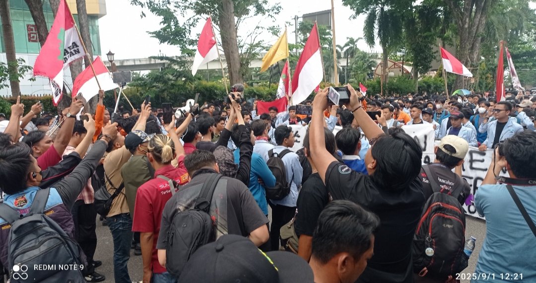 Palembang, Satupena.co.id – Ribuan mahasiswa berdemo di depan gedung DPRD Sumsel, terpantau di lokasi sekitar pukul 12:19 WIB, para masa pendemo mulai berdatangan. Senin (01/9/2025).