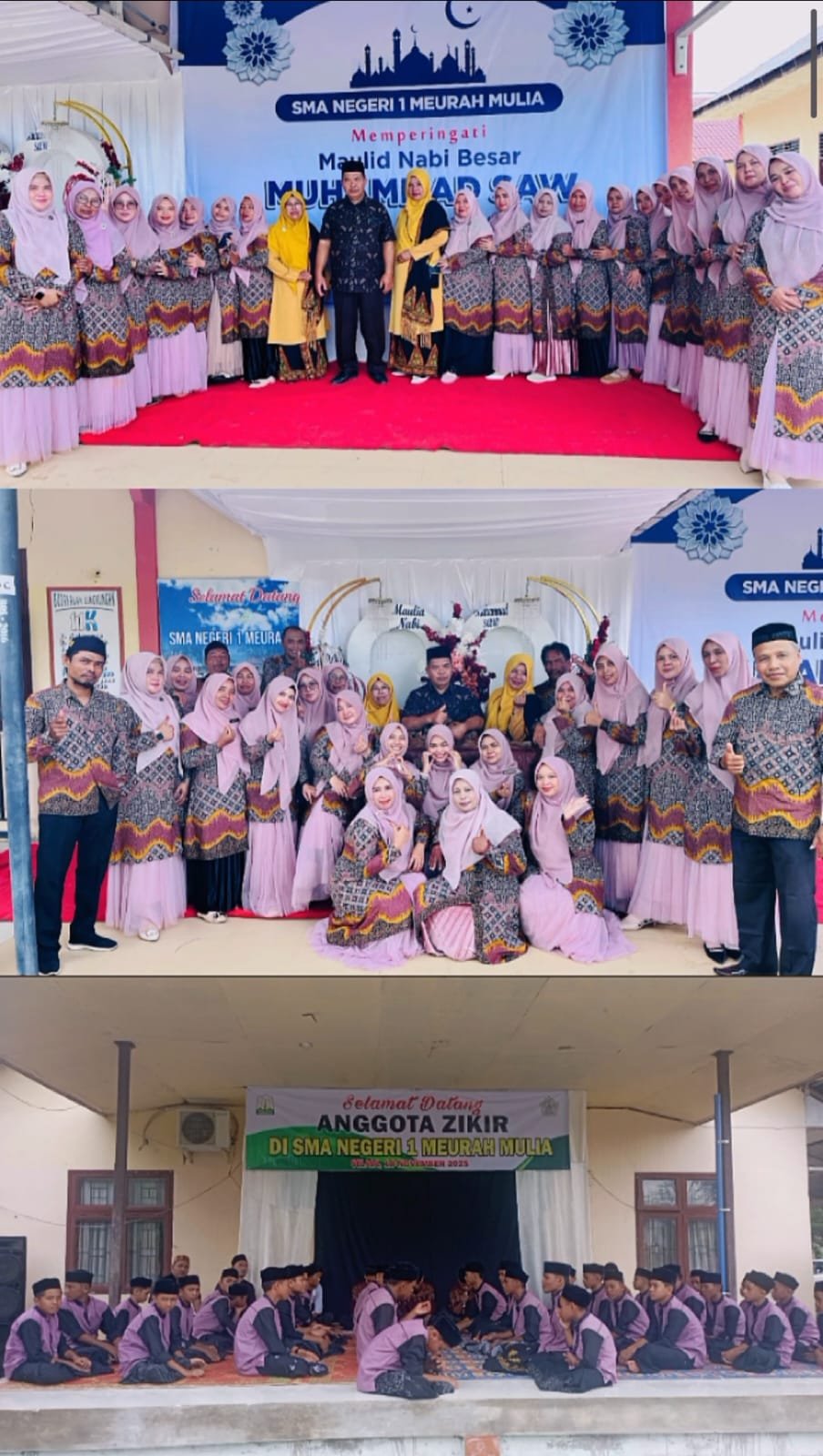 Kepala SMA Negeri 1 Murah Mulia, Drs. Sayuthi, M.Pd., dalam sambutannya menyampaikan bahwa peringatan Maulid merupakan momentum penting dalam pembinaan karakter dan penguatan nilai-nilai keislaman di lingkungan pendidikan.