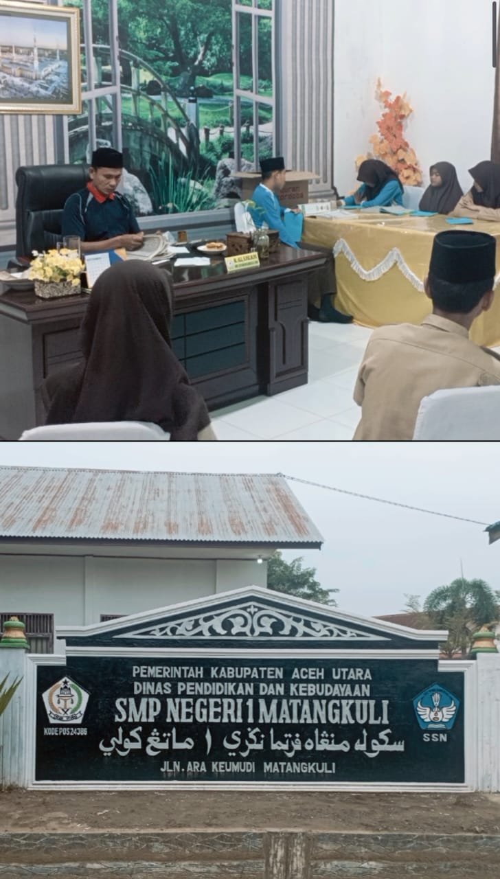 Pada Sabtu (13/9/2025), Kepala Sekolah SMP Negeri 1 Matang Kuli, M. Ali, S.Pd.I., M.Pd., kembali menggelar tes hafalan Al-Qur’an yang berlangsung di ruang kepala sekolah. Tes tersebut diikuti oleh perwakilan siswa dari setiap kelas, masing-masing satu orang, untuk mengukur capaian hafalan mereka.