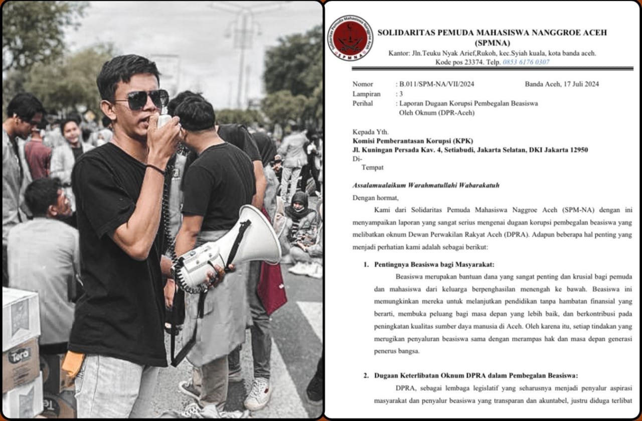 17 Juli 2024 Solidaritas Pemuda Mahasiswa Nanggroe Aceh (SPM Nanggroe Aceh) resmi melaporkan dugaan korupsi beasiswa 2017 ke KPK. Koordinator SPM Nanggroe Aceh, Rieza Alqusri, menyatakan bahwa langkah ini diambil karena kekecewaan mendalam terhadap lemahnya penegakan hukum di Aceh.