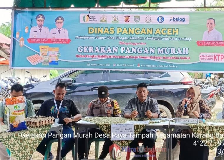 Dinas Pangan Aceh bekerjasama dengan Dinas Pangan, Kelautan, dan Perikanan Kabupaten Aceh Tamiang gandeng Bulog sebagai penyedia komoditi menggelar Gerakan Pangan Murah di Desa Paya Tampah, Kecamatan Karang Baru. Pada Kamis, (13/03/2025).