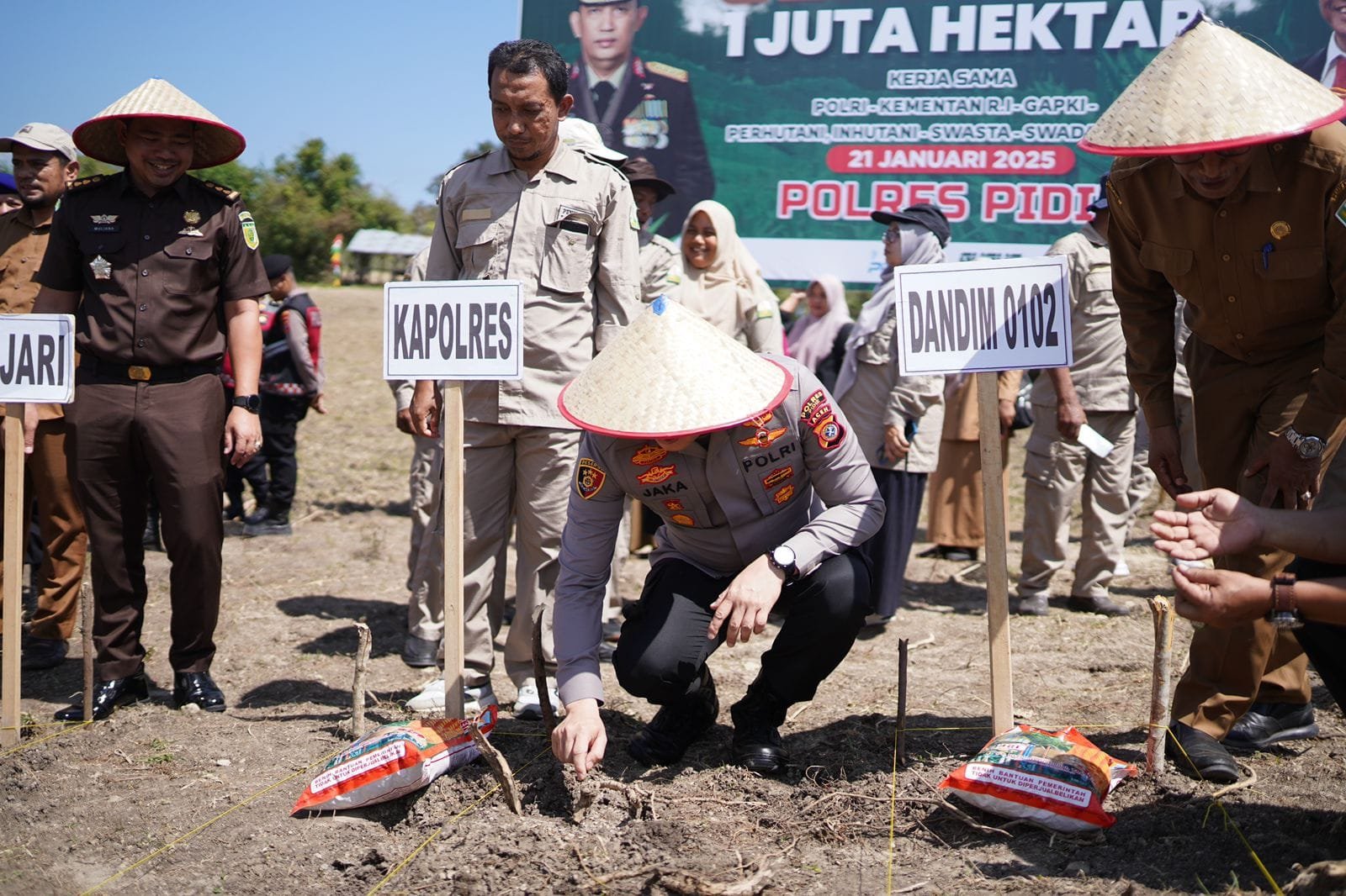 Kapolres Pidie AKBP Jaka Mulyana, SIK, MIK mengatakan, kegiatan ini merupakan bagian dari penanaman sejuta hektar jagung sebagai bentuk dukungan pada program ketahanan pangan yang dilaksanakan oleh pemerintahan bapak Presiden Prabowo Subianto.