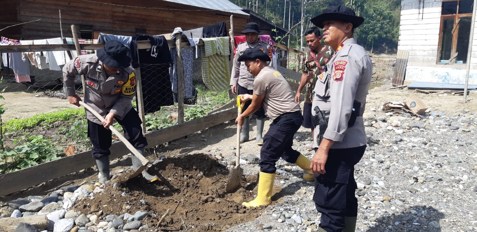 Kapolsek Linge IPTU Aidil Novrizal bersama personel turun langsung ke lokasi untuk meninjau sekaligus bergotong royong dalam proses pembangunan sumur bor tersebut. Kehadiran personel Polri di tengah masyarakat menjadi wujud kepedulian sekaligus kebersamaan dalam membantu warga yang tengah bangkit dari dampak bencana.