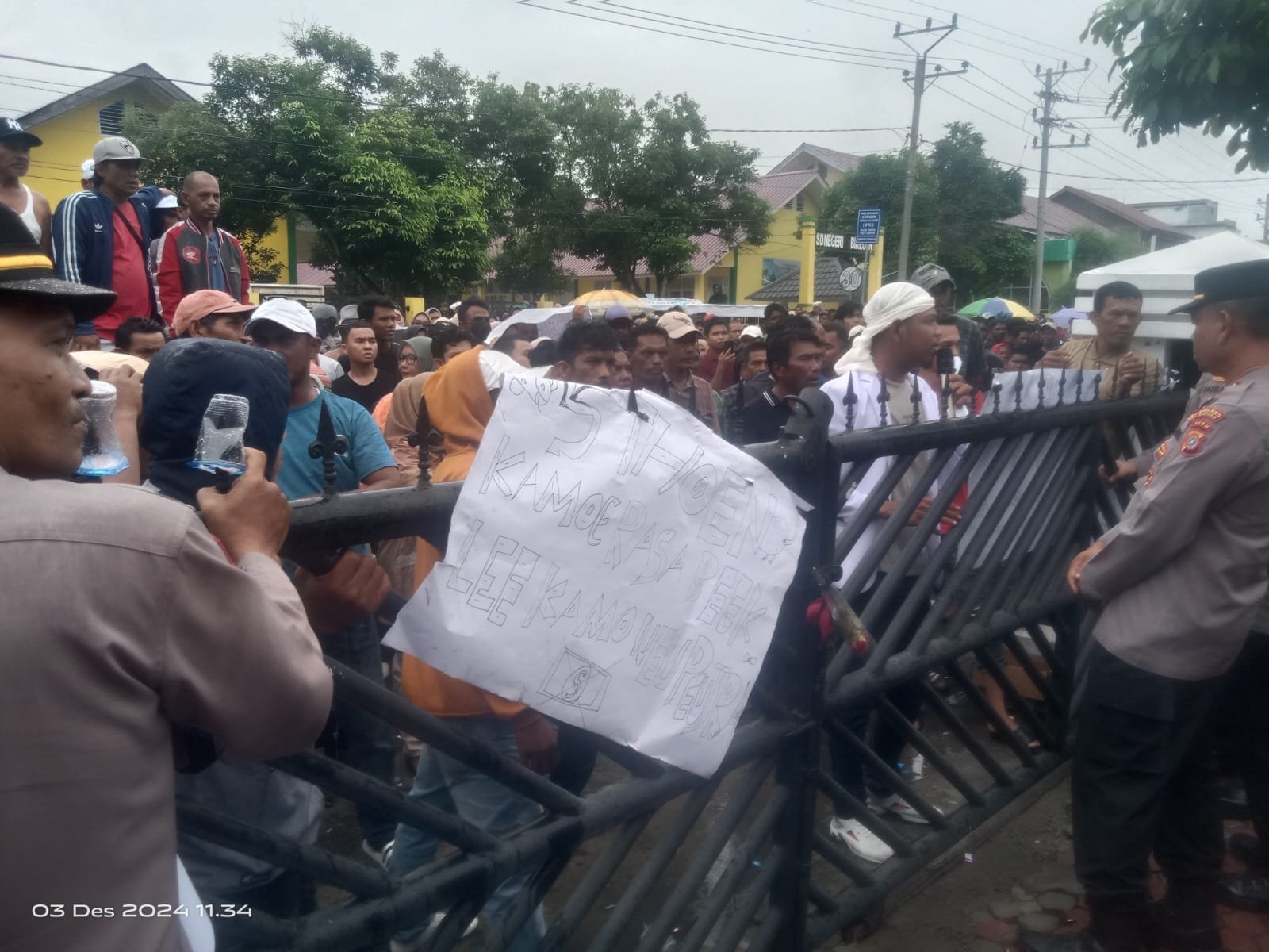 Para demonstran yang dikomandoi beberapa pentolan timses paslon 01, menggeruduk gedung wakil rakyat. Mereka, dikabarkan menolak hasil pemungutan suara. Dalihnya, terjadi kecurangan praktik money politik yang belum terbukti secara hukum, atau ada pihak yang tertangkap tangan.