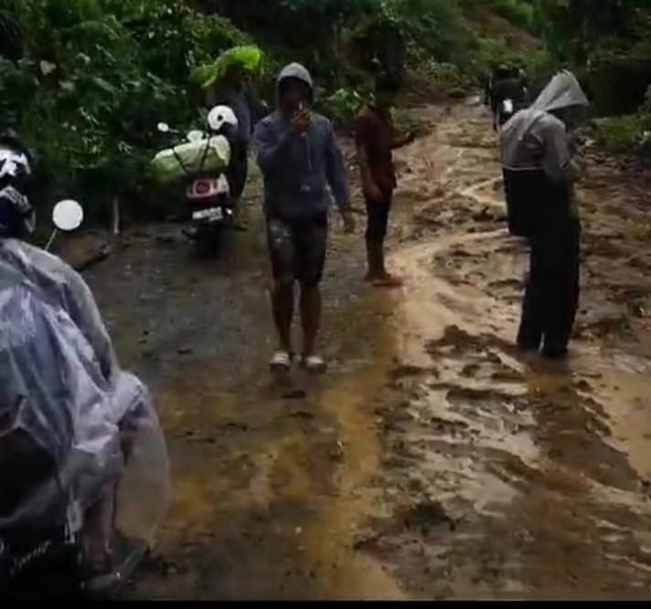 Sementara itu, para pengguna jalan dalam kondisi hujan yang terus mengguyur, mereka terlihat bersama-sama ikut membersihkan ruas jalan yang tertutupi tanah longsor sambil menunggu bantuan alat berat dari pemerintah kabupaten tiba.
