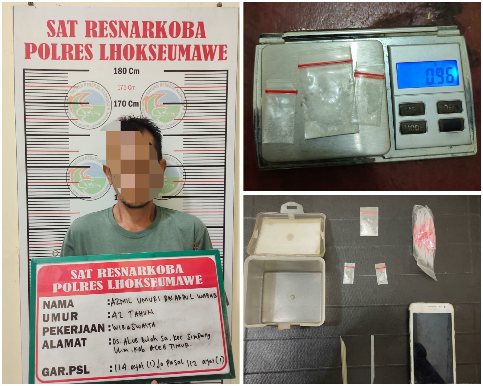 Kepada awak media, sabtu 4 Mei 2024 pagi, Kapolres Lhokseumawe AKBP Henki Ismanto, S.I.K melalui Kasat Narkoba AKP Wijaya Yudi Stira Putra mengatakan, sebelumnya tim Opsnal Satresnarkoba Polres Lhokseumawe menerima informasi dari masyarakat tentang aktivitas transaksi narkotika di daerah tersebut, yang kemudian dilakukan penyelidikan hingga penangkapan pelaku.