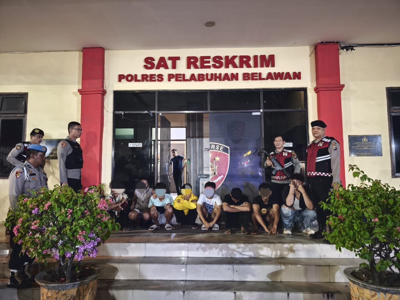 Belawan,–Satupena.co.id. Tim Patroli Gabungan Polres Pelabuhan Belawan menangkap sembilan remaja dan pemuda yang terlibat aksi tawuran di Jalan Selebes pada Minggu (2/2) sekitar pukul 01.30 WIB. Aksi ini merupakan bentrokan antara kelompok pemuda Gang 10 dan Gang 7 yang saling membalas dendam.2 Februari 2025
