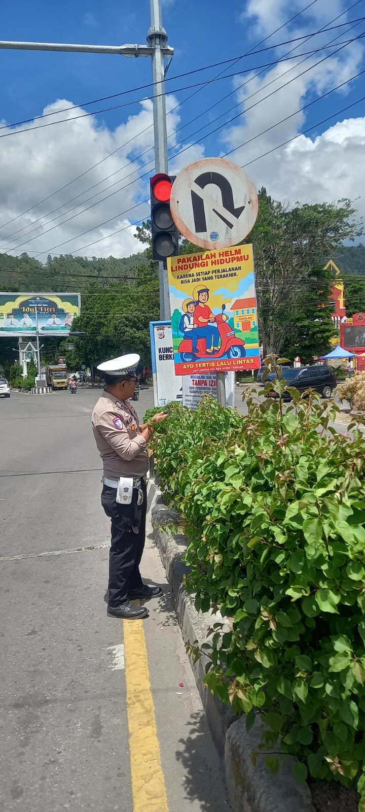 Satuan Lalu Lintas (Satlantas) Polres Aceh Tengah terus berupaya menekan angka kecelakaan lalu lintas melalui berbagai langkah preventif. Salah satunya dengan memasang baleho dan spanduk berisi imbauan keselamatan berkendara di sejumlah titik strategis. pada Rabu siang (4/6/2025).
