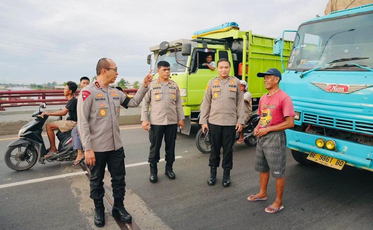 Kapolda Sumsel Irjen A Rachmad Wibowo saat melakukan peninjauan dalam rangka melihat jalannya pengawasan muatan, dimensi, dan regulasi hukum truck atau kendaraan angkutan barang menilai, sekatinya melalui ‘weigh in motion’ yang dipasang didepan akan secara otomatis bisa diketahui berat kendaraan dan muatannya.