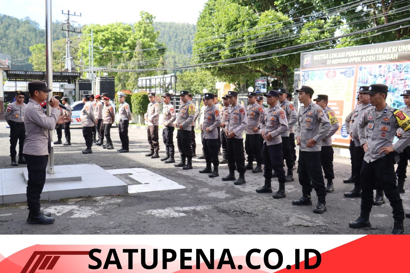 Satuan Samapta Polres Aceh Tengah terus meningkatkan kemampuan personel melalui latihan Pengendalian Massa (Dalmas) tingkat awal dan lanjutan yang digelar di depan pos penjagaan Mako Polres Aceh Tengah, Kamis (16/4/2026) pagi.