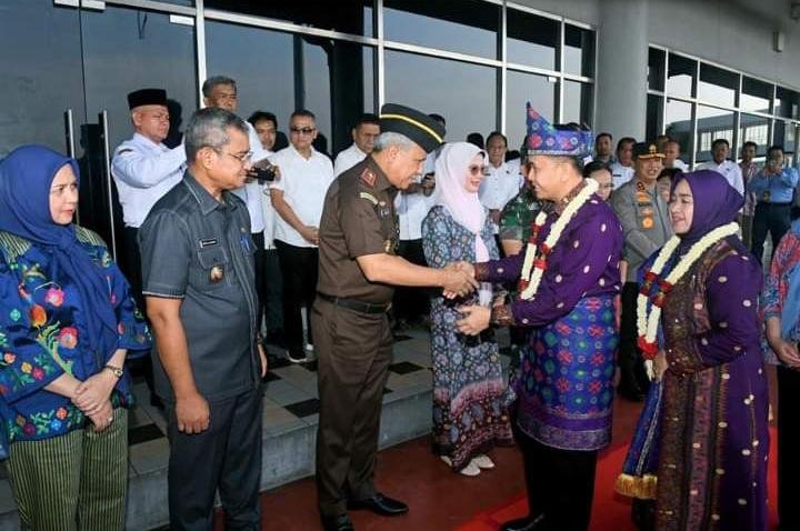 Deli Serdang- Satupena.co.id: Pejabat (Pj) Gubernur Sumatera Utara (Sumut), Agus Fatoni bersama Penjabat (Pj) Ketua TP PKK Sumatera Utara (Sumut), Tyas Fatoni tiba di Bandara Internasional Kualanamu Kabupaten Deli Serdang, sekitar pukul 16:08 WIB dari Halim Perdana Kusuma, Jakarta. Kedatangannya disambut oleh Forum Koordinasi Pimpinan Daerah (Forkopimda), di antaranya Kapolda Sumut, Irjen Pol. Agung Setya Imam Effendy, Pangdam I/BB, Mayjen TNI M Hasan, Ketua DPRD Provinsi Sumatera Utara (Sumut), Sutarto, dan Kepala Kejaksaan Tinggi (Kajati) Sumatera Utara (Sumut), Idianto serta Penjabat (Pj) Bupati Deli Serdang, Wirya Alrahman di Bandara Internasional Kualanamu, Kabupaten Deli Serdang, Provinsi Sumatera Utara (Sumut), Rabu (26/06/2024).