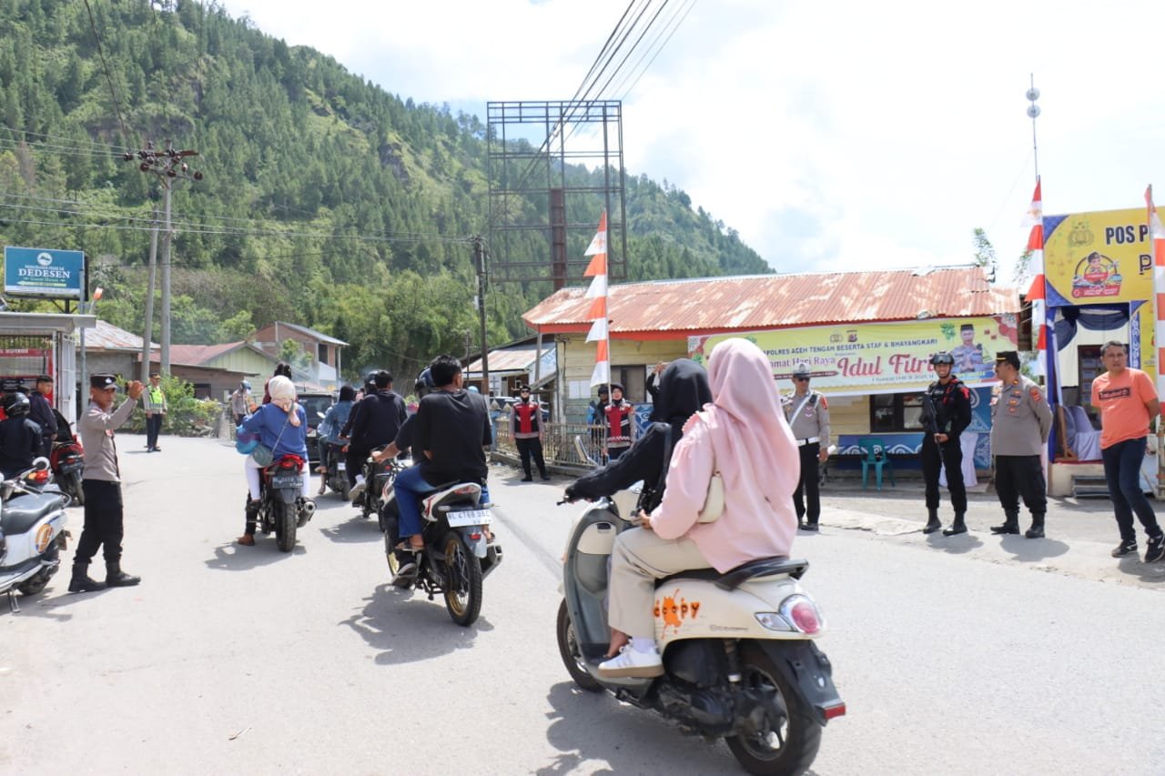 Dihari ke empat lebaran idul Fitri, Kapolres Aceh Tengah kembali turun bersama ratusan personel untuk melakukan patroli dan pengaturan di disejumlah titik persimpangan dan lokasi wisata.