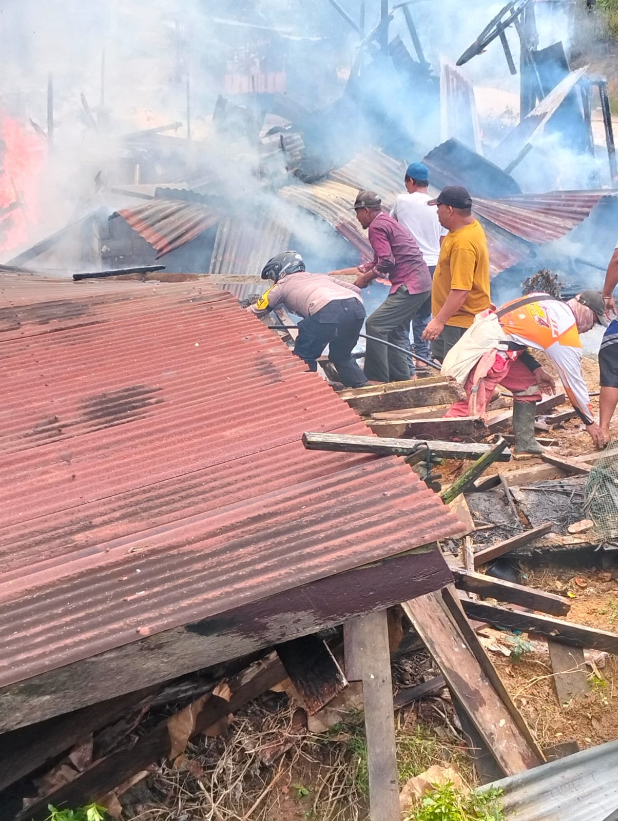 - Tiga unit rumah berbahan kayu ludes terbakar.