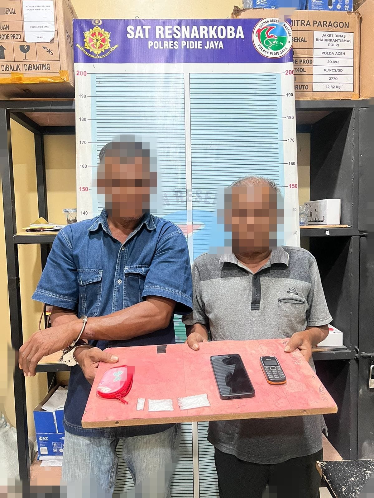 Dua pelaku yang diamankan adalah MJ warga Gampong Peulandok Teunong, Kecamatan Tringgadeng, dan AJ warga Gampong Reulet, Kecamatan Ulim, Kabupaten Pidie Jaya. Operasi penangkapan dimulai setelah Tim Opsnal Satresnarkoba Polres Pidie Jaya mendapatkan informasi dari masyarakat mengenai seringnya terjadi penyalahgunaan narkotika di sekitar Gampong Peulandok Teunong.