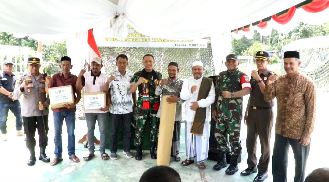 Ketua Tim Pengawasan dan Evaluasi (Wasev) TMMD ke-119 Kodim 0102/Pidie Kolonel Inf Sutrisno Pujiono, S.E.,M.M., bersama Dandim 0102/Pidie Letkol Abd.Husin, M. han., dan Sekda Pidie Drs. Samsul Azhar, menyerahkan bantuan Sarana Kontak kepada masyarakat Gampong Beungga kecamatan Tangse kabupaten Pidie. Kamis (07/03/2024).