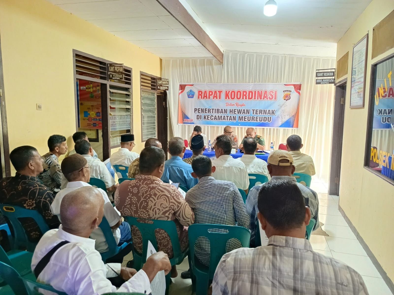 PIDIE JAYA – Menindaklanjuti aspirasi masyarakat yang disampaikan dalam kegiatan Jumat Curhat bersama Kapolres Pidie Jaya AKBP Ahmad Faisal Pasaribu, S.H., S.I.K., M.H., jajaran Musyawarah Pimpinan Kecamatan (Muspika) Meureudu menggelar Rapat Koordinasi Penertiban Hewan Ternak pada Rabu (14/5/2025) pukul 09.30 WIB di Aula Polsek Meureudu.