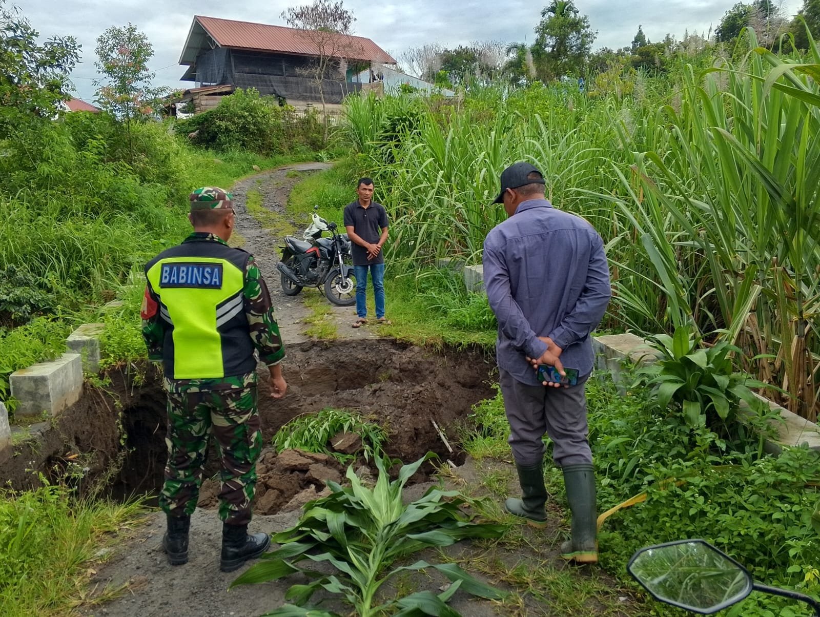Sehingga, warga mengetahui bahwa badan jalan penghubung dua Desa ini, tidak dapat di lalui dan dapat mencari jalan alternatif lainnya. Jelas Babinsa.
