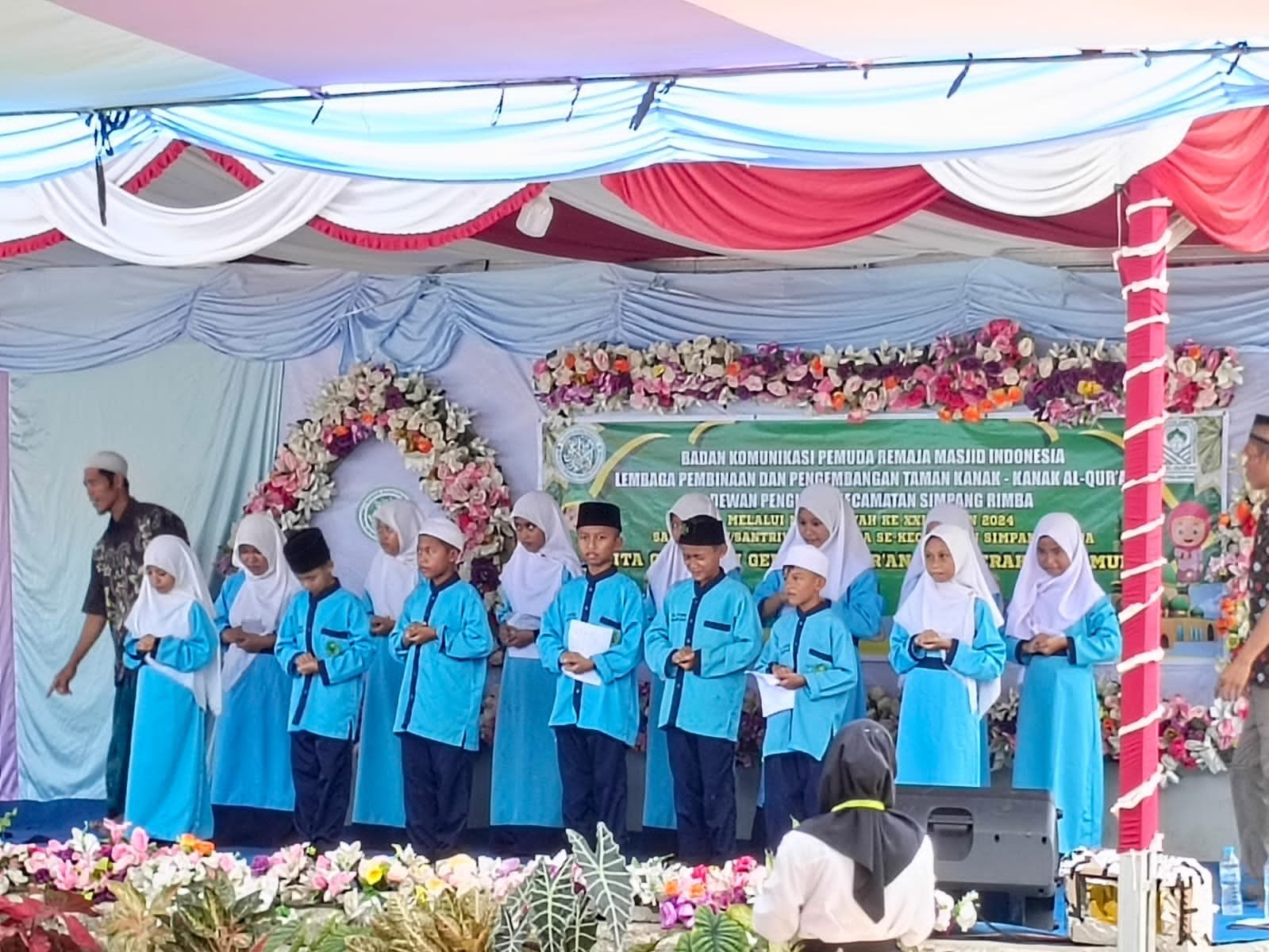 Sebanyak 184 santri dari 14 santri TK / TP Al-Qur’an Se Kecamatan Simpang Rimba mengikuti Munaqosah yang digelar di unit 136 Nurul Huda, Masjid Al Muhajirin Tran I desa Simpang Rimba Kecamatan Simpang Rimba kabupaten Bangka Selatan provinsi Kepulauan Bangka Belitung, Ahad (3/3/2024)