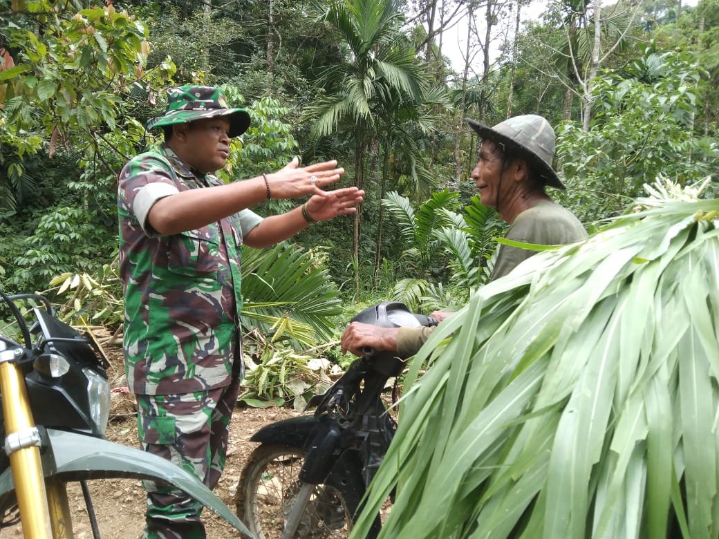 Dalam kesibukan saat meninjau progres kegiatan TMMD ke-119, Dandim 0102/Pidie, Letkol Inf Abd. Jamal Husin M. Han., berdialog langsung dengan petani Gampong Beungga Tangse, Nurdin Abdullah (63), saat mencari pakan ternak pada Kamis (29/02/2024).